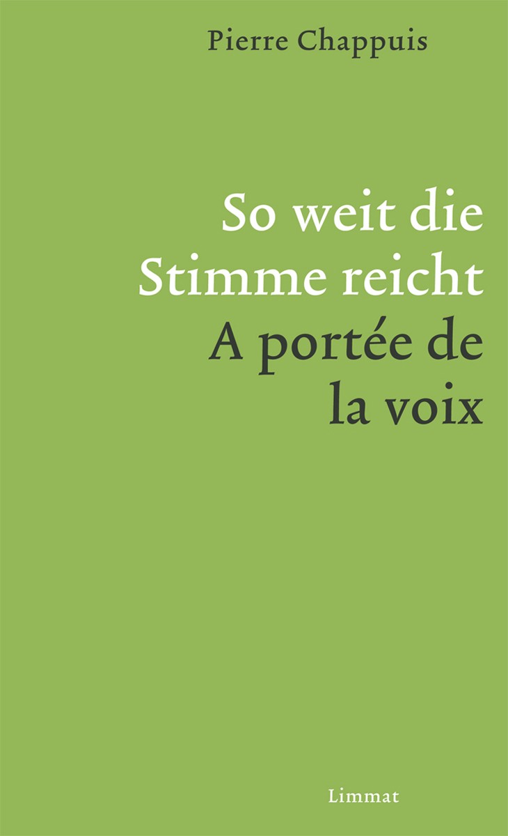 Pierre Chappuis ist ein Dichter der Natur. Durch sein ausserordentliches Können und die Unverwechselbarkeit seiner poetischen Rhetorik bringt er die Natur so einfühlsam zur Sprache, als hätte sie selbst das "Wort" ergriffen, um ihre Ödnis und Pracht, ihre Grausamkeit und Sanftmut, ihre Beharrlichkeit und ihren Wandel sprachlich darzutun. Die Natur hat bei Chappuis kein idyllisches und auch kein dramatisches oder exotisches Gepräge, sie erscheint zumeist in vordergründiger Unscheinbarkeit mit Feldern und Wäldern, Gewässern und Hügeln, Felsen und Pfaden, eine in sich ruhende, weitgehend unbeschädigte Welt, die freilich durch jäh klaffende Abgründe oder durch zivilisatorischen Lärm aus der Ferne – Autobahn, Eisenbahn, Fabrik – bisweilen auch bedrohliche Komponenten erkennen lässt. So weit die Stimme reicht / A portée de la voix versammelt in sich all die Themen, Motive und Verfahren, die der Autor im Verlauf vieler Jahrzehnte immer wieder eingesetzt und dabei laufend differenziert und fortentwickelt hat.